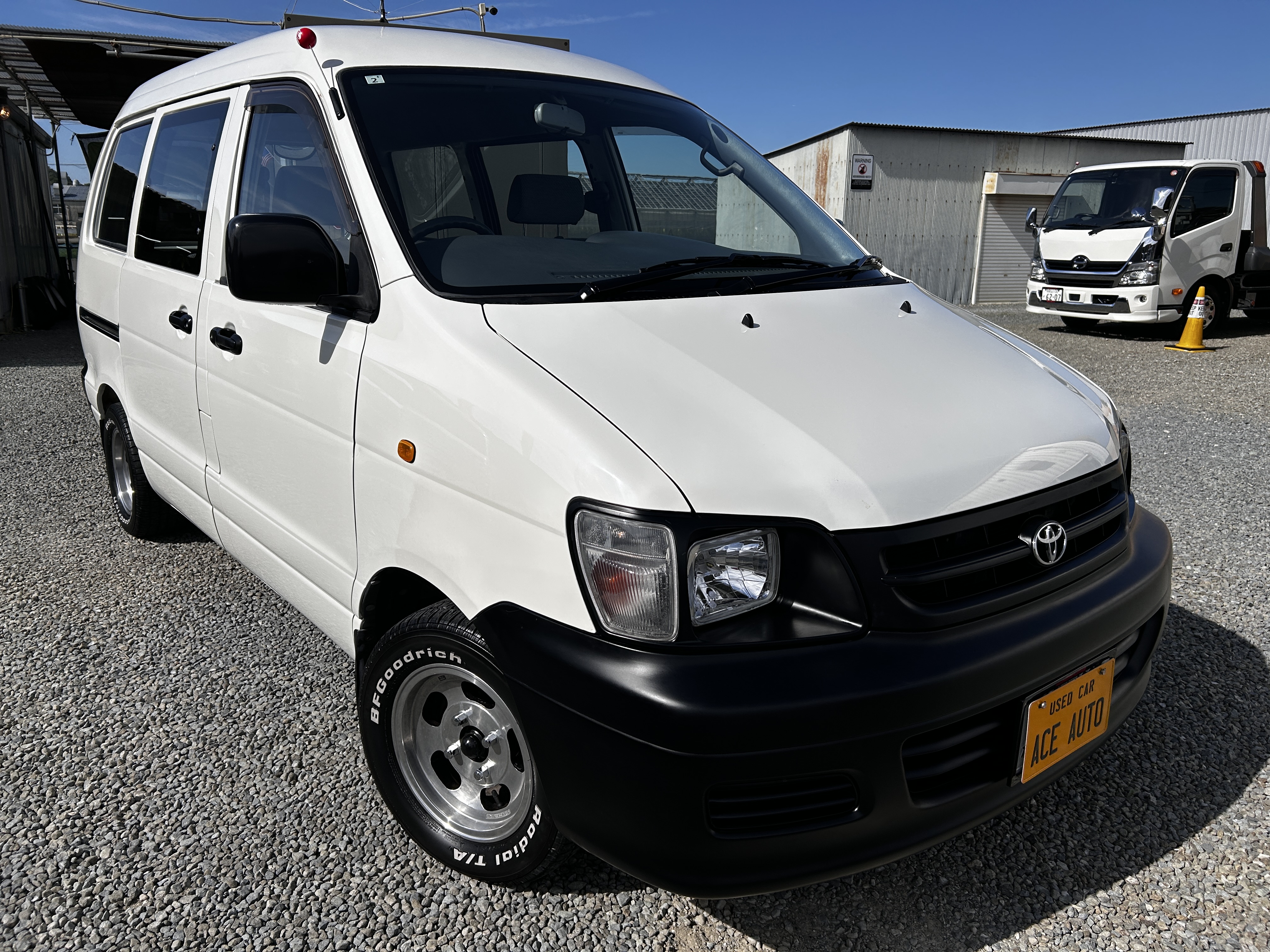 H14年式 タウンエース グレード:GL 2.2ディーゼル!! 3C!! ローダウン!! オートマ!! 社外13インチアルミ!エンケイ風!! BFGoodrichホワイトレター付き!! 集中ドアロック!! ETC!! エアコン!パワステ!パワーウィンドウ!! タイミングベルト交換済み!! 純正バネ有ります!! US風!! 旧車!!
